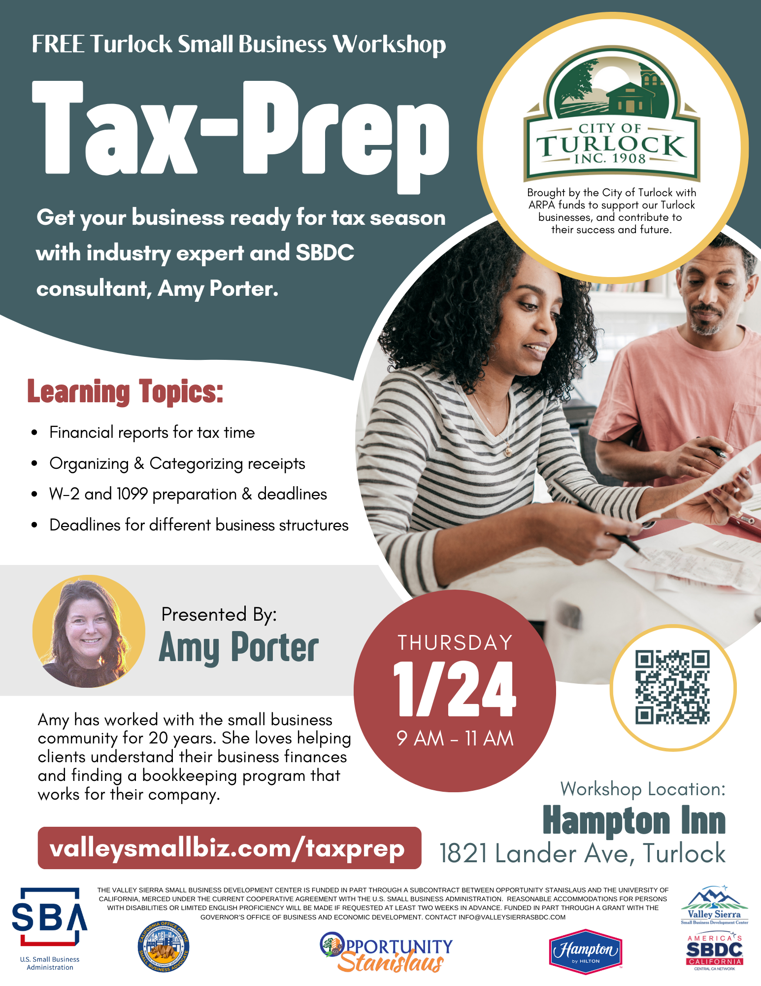 Free Tax-Preparation Worksop for Local Businesses. Get All Your Questions Answered by Local Tax Expert Amy Porter.