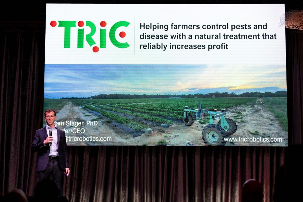 Founded by CEO Adam Stager in 2017 and joining the SBDC in 2021, TRIC Robotics has revolutionized agriculture practices through technology, automation and ultraviolet light to create an efficient alternative to pesticide use. Along with fellow co-founders, Field Operations Manager Vishnu Somasundaram and Technical Manager Ryan Berard, TRIC Robotics has altered the management of crops on strawberry fields, especially on the Central Coast. Their large-scale robots have a 40-foot wingspan, operate at night to treat strawberry fields for pests and fungus and use powerful UV light technology and bug vacuums. The robots can mimic average tractors in their navigation methods and terrain awareness, and in addition, provide better precision and can capture key field data with its software technology. A number of significant Central California strawberry farmers, where the majority of all US-grown strawberries are cultivated, are eager to deploy environmentally sustainable, chemical-free solutions to crop pests and are actively partnering with TRIC Robotics and seeing incredible results.