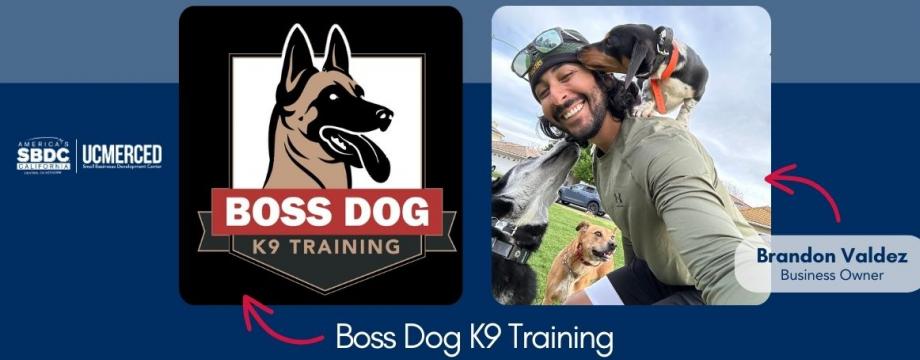 ""Hello, my name is Brandon Valdez, owner and founder of Boss Dog K9 Training. I want to extend my heartfelt gratitude to Rhonda at SBDC. Her coaching and guidance have been instrumental in my success, particularly in such a short period. Without her expertise, I wouldn't have known where to begin." - Brandon Valdez, CEO